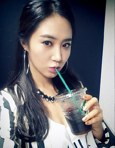 사진 속 유리는 커피를 마시며 입술을 쭉 내민 깜찍한 표정을 짓고 있는 모습. 검은색 생머리를 늘어뜨린 채 뚜렷한 이목구비를 과시한 유리는 은근히 섹시하면서도 도도한 매력을 발산해 시선을 모은다.
