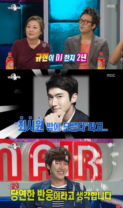 이날 오프닝에서 MC 김구라는 김해숙을 소개하며 "규현이 '라디오 스타'를 진행한지도 2년이 돼 간다. 그런데 작가가 김해숙 씨와 인터뷰 하는데 슈퍼주니어에서 최시원 밖에 모른다고 했다더라"고 말을 열었다.