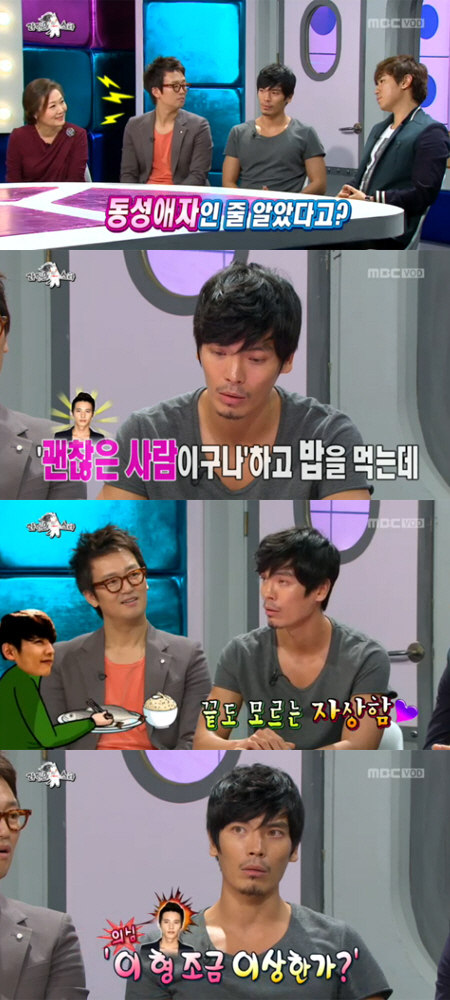 이날 MC들은 원빈과 영화 '아저씨'에 함께 출연한 김성오에게 "처음에 원빈이 동성애자인 줄 알고 경계했다고 하던데 사실이냐"고 물었다.