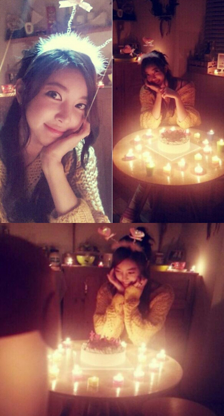사진 속 NS윤지는 촛불과 케이크가 올려진 테이블 앞에서 행복한 미소를 짓고 있다. 하트 장식이 달린 귀여운 머리띠를 한 NS윤지는 파티걸 분위기를 물씬 풍기며 인형 미모를 뽐냈다.