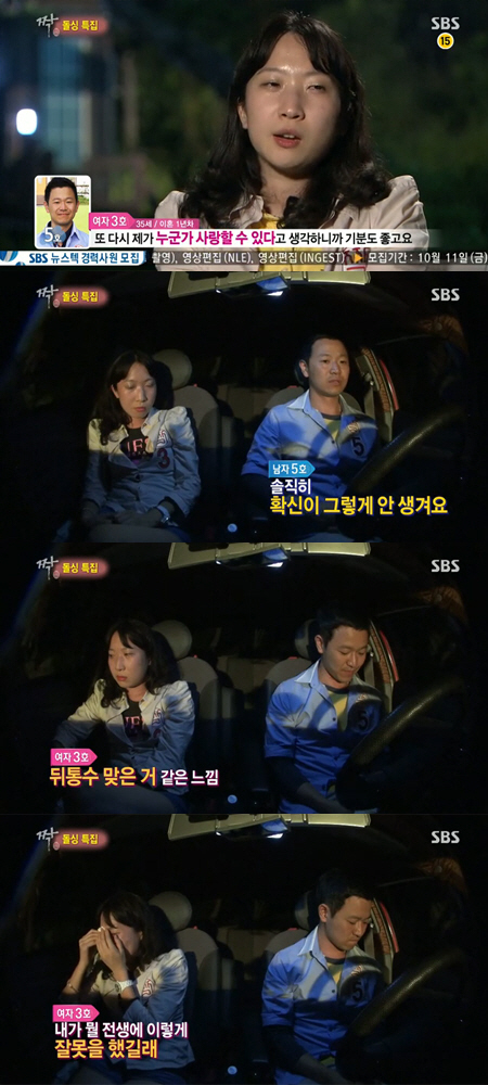 첫 만남 때부터 남자 5호에게 관심을 보인 여자 3호는 "다시 내가 누군가를 사랑할 수 있다고 생각하니 기분이 좋다"며 "사랑할 수도 있다는 생각이 든다"고 기뻐했다.