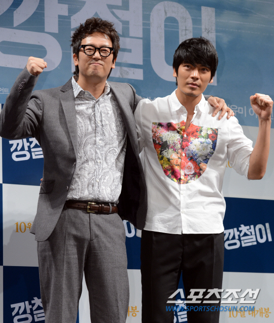 2일 오전 서울 압구정 CGV에서 영화 '깡철이' 제작보고회가 열렸다. 김정태(왼쪽), 김성오가 포토타임에서 포즈를 취하고 있다. '깡철이'는 가진 것 없어도 깡 하나만은 남부럽지 않은 부산 사나이 강철(유아인)이 세상에서 가장 소중한 여인인 엄마 순이 씨(김해숙)를 지키기 위해 깡패 같은 세상과 맞서 싸워야만 하는 이야기를 그린 작품으로 10월 2일 개봉한다. 김보라 기자 boradori@sportschosun.com /2013. 09. 02/