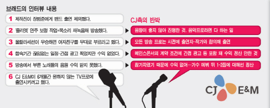 사실 가장 큰 문제는 CJ E&M 그 자체다. 브래드가 지적했듯, CJ는 참가자들이 자사 프로그램 출연 및 광고 촬영 등으로 바쁜 일정을 소화하게 했다. '인큐베이팅 시스템'이라는 그럴싸한 말로 포장하고 있지만, 6개월 동안 참가자들이 하는 음악 활동은 '슈스케' 전국 투어 정도다. 소속사를 섭외하는 일도 차일피일 미뤘다는 역대 도전자들의 폭로도 있다. 경쟁 프로그램인 SBS 'K팝스타'에서는 일이 잘 풀리기만 하면 가요계 빅3라 불리는 기획사에 들어가 전문적인 트레이닝을 받을 수 있는데 굳이 논란의 중심에 있는 CJ행을 선택할 이유가 없는 셈이다.