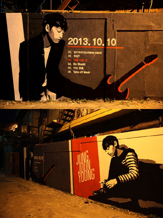 정준영의 기습 트랙리스트 벽화는 정준영과 미대생들이 함께 모여 완성한 작품. 평소 홍대 앞 길거리 벽에 그려져 있는 학생들의 벽화에서 영감을 얻은 이번 작업은 특별한 트랙리스트 공개를 위해 기획되었다.