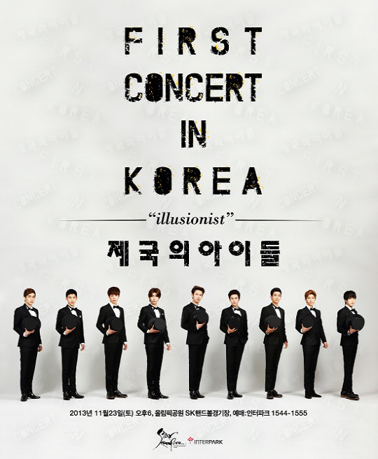 제국의아이들은 4일 오는 11월 23일 열릴 국내 첫 단독 콘서트의 포스터를 공개해 큰 관심을 모았다. 포스터 속에서 제국의아이들 9명은 나비넥타이에 턱시도를 입고 마술사 모자를 하나씩 들고 있는 포즈로 깔끔한 신사와 같은 모델 포스를 뽐냈다.