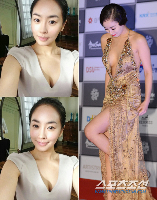 한수아, 일상 셀카도 가슴골 노출 ‘레드카펫 드레스 화제’
