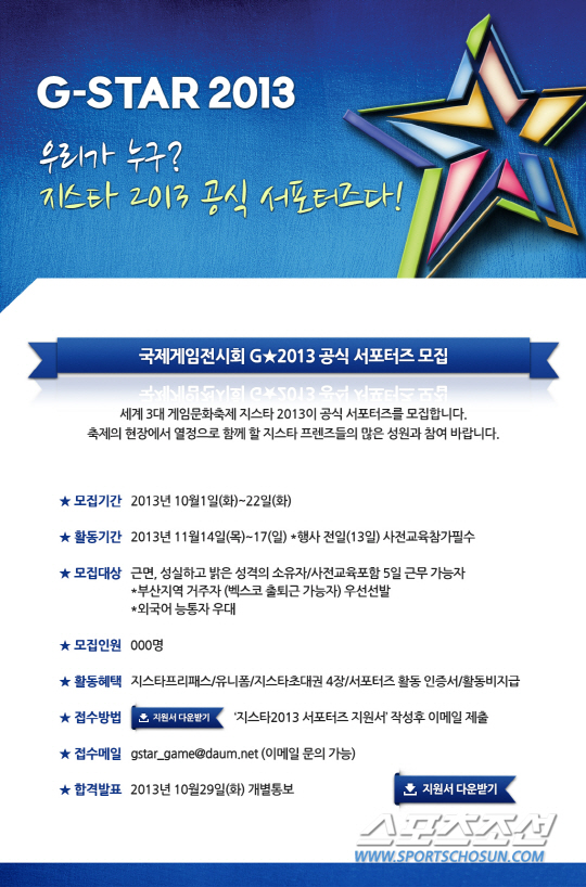 국제 게임쇼 '지스타 2013', 22일까지 공식 서포터즈 모집