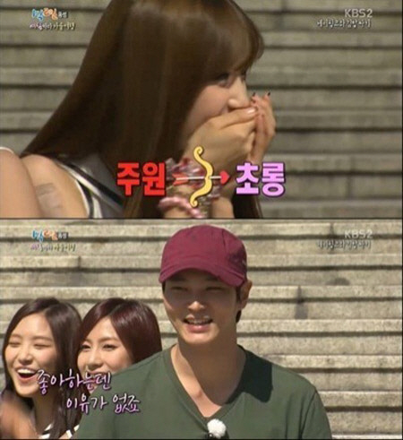 주원은 에이핑크 멤버들의 매력 발산을 본 뒤 최종적으로 박초롱을 선택해 시선을 사로잡았다. 주원은 박초롱을 선택한 이유로 "다 좋은데 그냥"이라고 말끝을 흐리다가 "좋아하는 데 이유가 있느냐"고 덧붙이며 사심을 드러냈다. <스포츠조선닷컴>