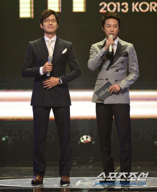7일 오후 서울 경희대학교 평화의 전당에서 '제19회 한국뮤지컬대상' 시상식이 열렸다. 공동 MC를 맡은 유준상(왼쪽)과 오만석이 인사말을 하고 있다. 정재근 기자 cjg@sportschosun.com