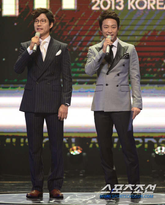 7일 오후 서울 경희대학교 평화의 전당에서 '제19회 한국뮤지컬대상' 시상식이 열렸다. 공동 MC를 맡은 유준상(왼쪽)과 오만석이 인사말을 하고 있다. 정재근 기자 cjg@sportschosun.com
