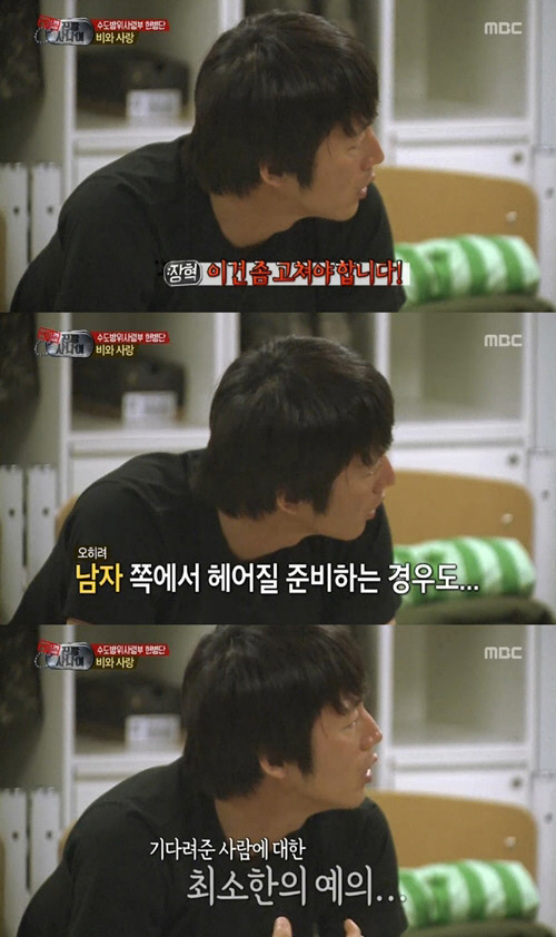 장혁은 "근데 상병에서 병장으로 넘어갈 쯤에 마음이 변해 헤어질 준비를 하더라"면서 "그건 기다려 준 사람에 대한 예의가 아니다. 이건 좀 고쳐야 한다"고 소신을 밝혔다.