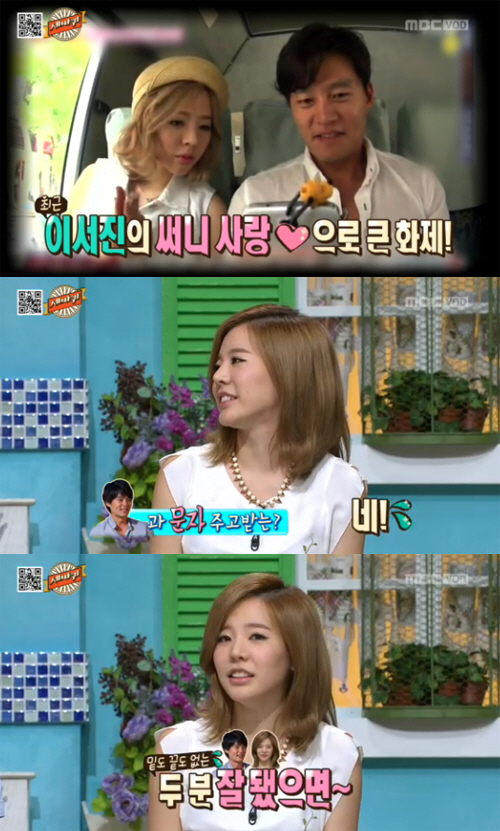 이날 MC 이휘재는 "이서진 때문에 써니가 요즘 더 화제가 됐다. 서로 문자는 주고 받냐"고 물었고, 써니는 "그렇다"고 대답했다.