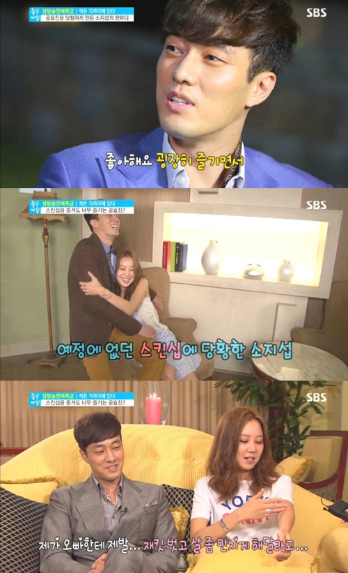 이날 방송에서는 최근 종영한 SBS 수목드라마 '주군의 태양' 주연배우 공효진 소지섭의 인터뷰가 공개됐다. 소지섭은 "공효진이 촬영 때뿐만 아니라 실제로도 스킨십을 즐기는 것 같다"고 폭로해 공효진을 당황케 했다.