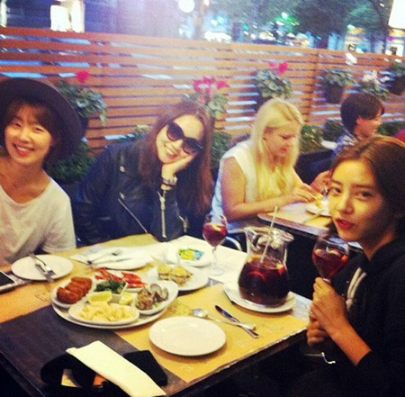사진 속 손담비는 와인잔을 들고 깜직한 표정을 짓고 있는 모습. 이런 손담비 맞은편에 앉은 한지혜는 챙이 넓은 모자를 쓴 채 여유로운 모습으로 환한 미소를 지어 시선을 모은다.