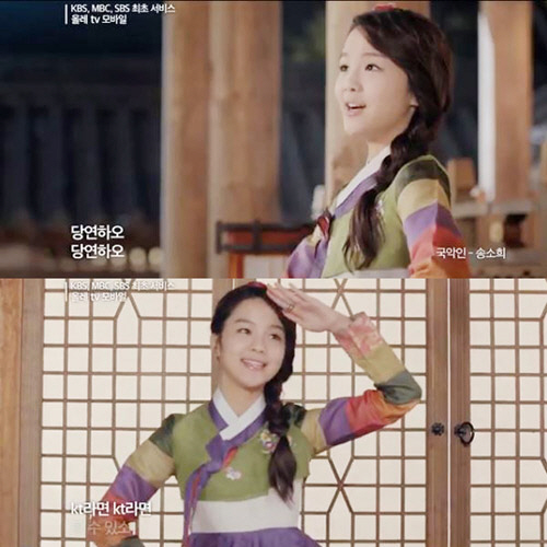 TV 광고에 출연하며 많은 인기를 누리고 있는 송소희는 1997년 생으로 호서고등학교에 재학 중이다. 5살 때부터 국악과 시조에 남다른 소질을 보여 국악 신동으로 불린 송소희는 2008년 KBS1 '전국 노래자랑', 2010년에는 '한국을 빛낸 자랑스런 한국인' 대상을 수상하는 등 각종 대회에서 우수한 성적을 거뒀다.