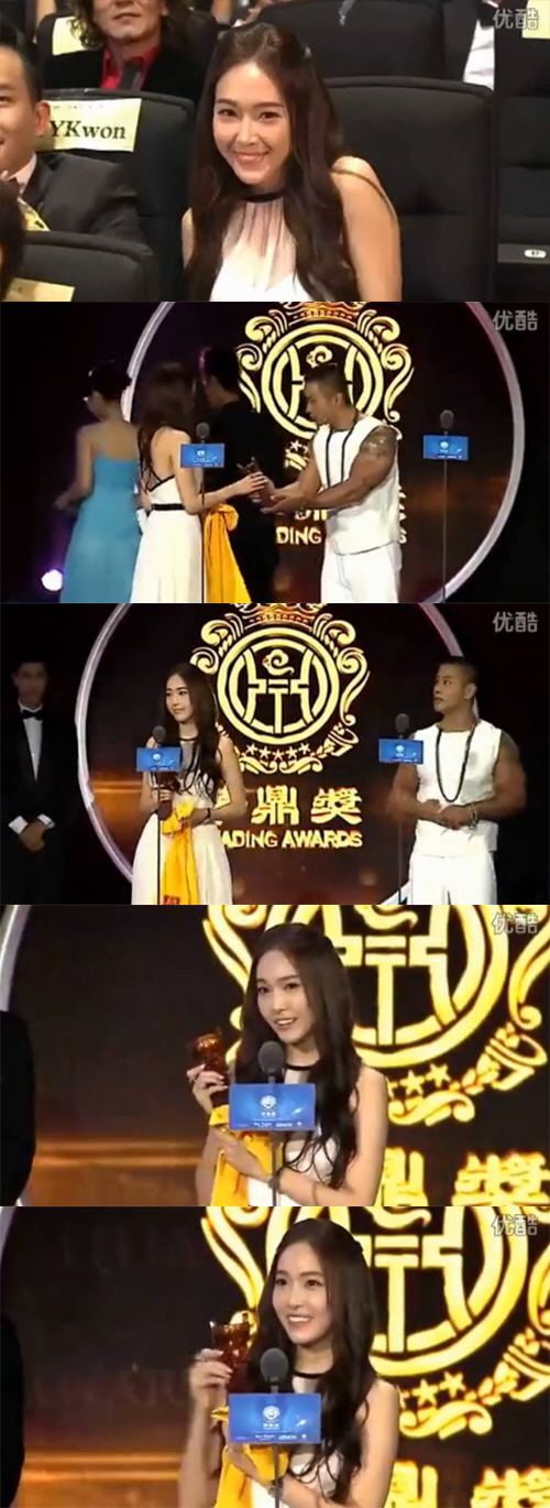 이날 시상식에서 소녀시대는 '베스트 글로벌 아이돌 그룹상'을 받았다. 멤버들을 대표해 무대에 오른 제시카는 화이트 컬러의 롱 드레스를 입고 여신 같은 자태를 뽐냈다.