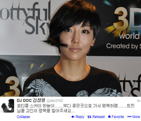 김창렬은 8일 자신의 트위터에 "로티플스카이 하늘아 부디 좋은 곳으로 가서 행복하렴. 트친님들 고인의 명복을 빌어주세요"라는 글을 올려 많은 사람들과 함께 애도의 뜻을 보냈다.