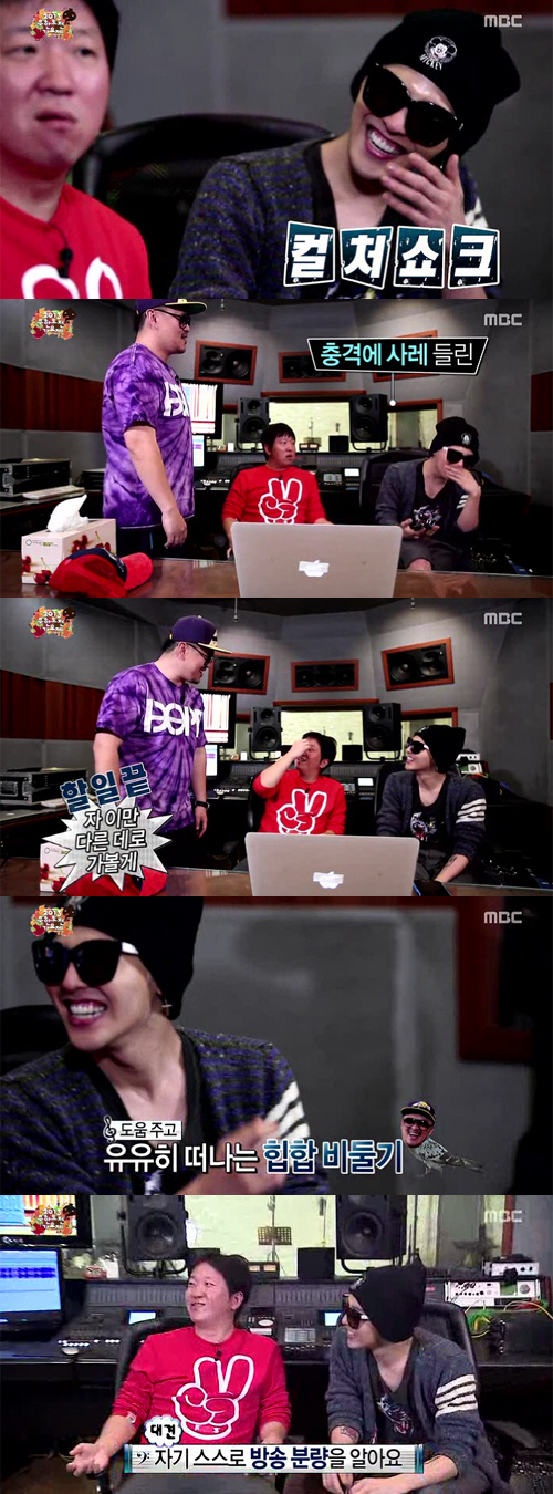 정형돈과 데프콘의 트랩비트를 본 지드래곤은 충격을 받은 듯 사레까지 들려 웃음을 자아냈다.