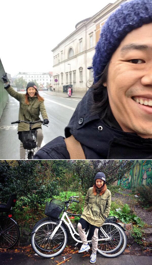 사진에는 클로즈업된 이상순의 얼굴 뒤로 자전거를 타고 환한 미소로 뒤따라 오고 있는 이효리의 모습이 담겨 있다.