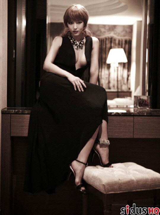 해당 사진은 한 매거진에서 진행한 오지은의 화보 중 일부로, 그녀는 깊게 파인 V라인 드레스를 입고 섹시한 자세를 취하고 있으며 특히 V라인 드레스 사이로 드러난 그녀의 적나라한 가슴라인으로 남성 팬들의 눈길을 사로잡았다