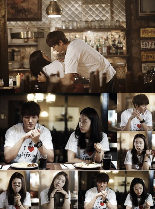 15일 제작사 측은 이민호와 박신혜가 캘리포니아의 한 산장에서 커플티를 입은 채 오붓한 둘만의 데이트를 즐기는 장면을 공개했다. 사진 속 두 사람은 앙증맞은 하트 위로 'I love california'라고 새겨진 티셔츠를 똑같이 입고 행복한 웃음을 머금는가 하면, 얼굴을 마주하며 설레는 표정을 짓고 있어 눈길을 모은다. 특히 외지고 어두운 산장에서 시선을 교차하며 서로에 대한 두근거리는 마음을 얼핏 내비치는 두 사람은 '케미'를 발산하며 본격적인 로맨스 연기를 예고하고 있다.