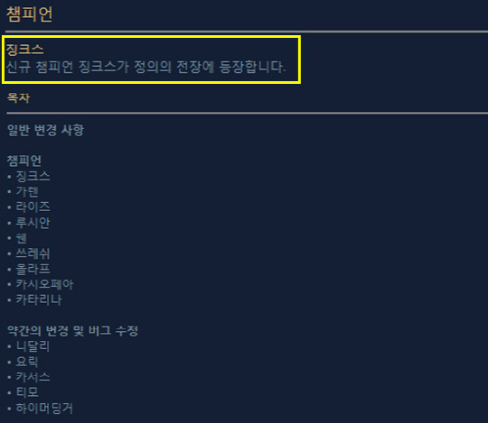 15일 롤 공식 홈페이지에는 '10월 15일(화) 패치 노트'라는 제목의 글이 게재, 당일 서버 업데이트 내용을 세밀히 전했다.