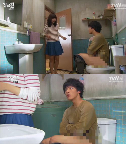 지난달 24일 방송된 tvN 일일시트콤 '감자별 2013QR3' 2회에서는 길선자(오영실 분) 나진아(하연수 분) 모녀가 홍혜성(여진구 분)을 연쇄살인범으로 오해한 뒤 경찰에 신고한 내용이 전파를 탔다.