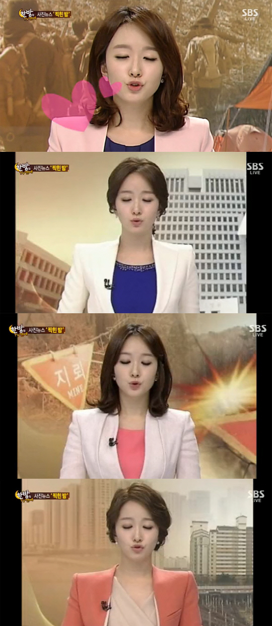 공개된 사진은 지난 5월 SBS '한밤의 TV연예'에서 '뽀뽀녀'로 소개된 박 아나운서의 캡처사진으로, SBS '8시 뉴스'를 진행하는 박 아나운서의 표정을 담고 있다. 특히 박 아나운서는 눈을 지그시 감고 입술을 내밀며 마치 뽀뽀를 하는듯한 모습으로 남성 팬들의 마음을 설레게 한다.