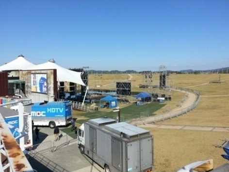 공개된 사진은 경기도 파주시에 위치한 임진각 평화누리 공원사진이며, 대형 무대와 함께 벌써 현장에 도착한 사람들도 보여 눈길을 끌었다.