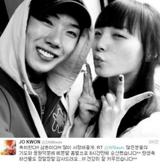 조권 "삼촌이다" 선예 득녀 축하
