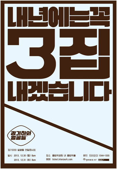 오는 12월 30일부터 12월 31일까지 올림픽공원 내 올림픽홀에서 장기하와 얼굴들은 '내년에는 꼭 3집 내겠습니다'라는 타이틀의 연말콘서트를 개최한다.