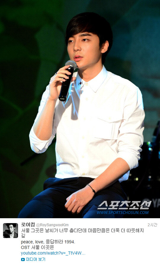 로이킴은 18일 자신의 트위터에 "서울 그곳은 날씨가 너무 춥다던데 마음만큼은 더욱 더 따뜻해지길. Peace, love, '응답하라 1994' OST 서울 이곳은"이라는 글과 함께 자신이 참여한 tvN '응답하라 1994' OST '서울 이곳은'의 뮤직비디오 영상링크도 함께 게재했다.
