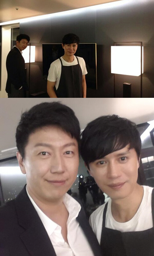 사진에는 앞치마를 입고 꽃미남 비주얼을 뽐내는 김민종과 정장을 입고 카리스마 넘치는 자태를 드러낸 김수로의 모습이 담겨 있다. 또한 블랙과 화이트의 모던하면서도 심플한 인테리어가 눈길을 끈다.