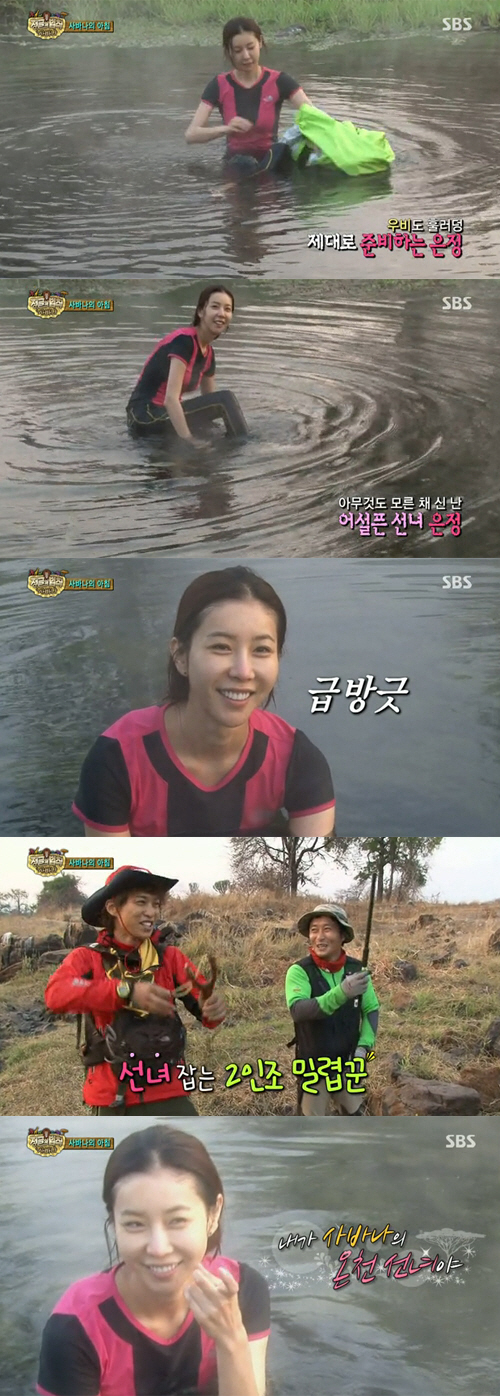한은정은 김병만과 김원준이 '선녀'같다고 칭찬하자 살짝 윙크하며 온천으로 들어오라고 유혹하는 손짓을 해 눈길을 끌었다.