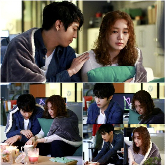 '담요 데이트'는 극 중 미래의 실수로 홀딱 젖은 두 사람이 옷과 머리를 말리며 방송 편집본을 함께 모니터하는 장면으로 지난 11일 경기도 이천의 세트장에서 촬영됐다.