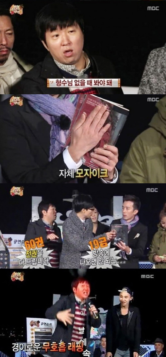 또 정형돈은 만화책이 당첨된 박명수에게 "만화책은 형수님 없을 때 봐야한다"면서 "19금 이다. 둘째 아이를 낳을 수 있다"고 말해 궁금증을 자아냈다.