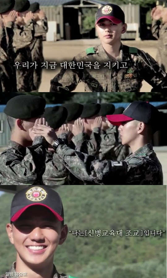 "세상을 내 안에 품어 웃고 울던 배우, 나는 신병교육대 조교 입니다"라는 카피 문구에 자신의 목소리를 담았으며, 신병들을 교육하는 유승호는 "경례!"라고 외치는 각 잡힌 조교 포스도 드러내고 있다.