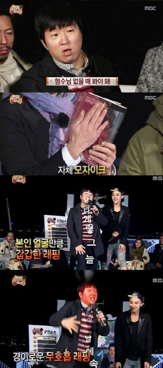 또 정형돈은 가요제 당일 공연 순서를 정하는 미션에서 숨도 제대로 쉬지 않는 무호흡 래핑을 선보였다. 정형돈은 무호흡래핑으로 거의 실신 지경에 이르렀고, 나중에는 결국 한 음으로 노래를 불러 출연진을 폭소케 했다.