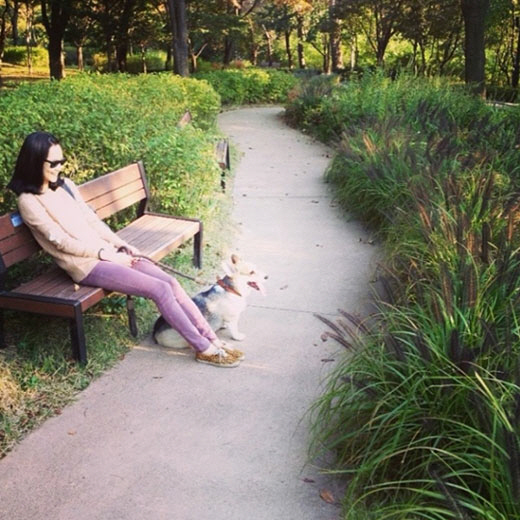 사진 속 윤승아는 반려견과 함께 남산 산책 중 벤치에 앉아 여유로움을 만끽하고 있는 모습이다. 이날 머리를 깔끔히 빗어 내린 윤승아는 피부미인임을 인증하듯 화장기 하나 없는 민낯을 선보여 시선을 사로잡았다.