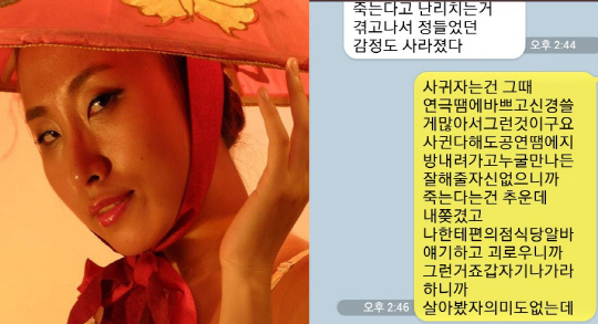 공개된 사진은 문자를 주고받은 화면을 캡쳐한 것으로 자신을 거리로 내몬 남자로 추축되는 사람이 "죽는다고 난리치는 거 겪고 나서 정들었던 감정도 사라졌다"고 했고 이유린은 "죽는다는 건 추운데 내쫓겼고 나한테 편의점 식당 알바 얘기하고 괴로우니까. 살아봤자 의미도 없는데"라는 내용이 담겨있어 충격을 줬다.