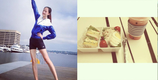 사진 속에는 혜박의 점심 식사 메뉴가 담겨져 있다. 가지런히 놓인 샌드위치와 계란과 방울토마토, 각종 채소 위에 소스가 뿌려져 있는 샐러드가 나란히 놓여 있는 모습이다. 이어 곱게 갈린 토마토 주스가 주황색을 띈 채 맛깔스럽게 담겨 있는 모습이다.