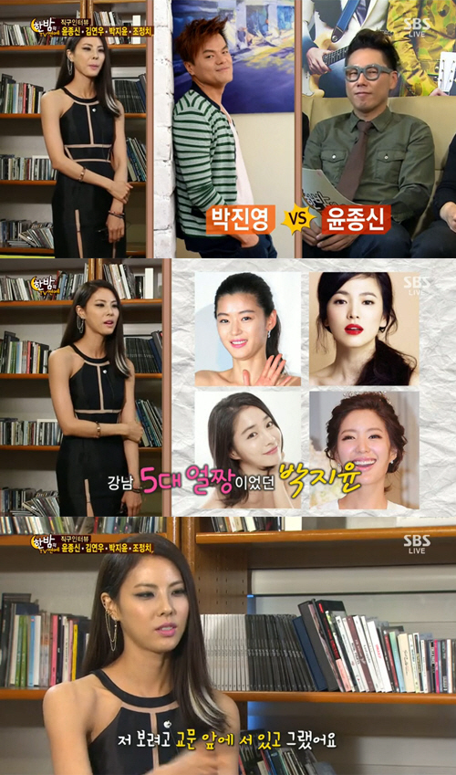 이날 윤종신은 "박지윤이 강남 5대 얼짱 출신이다. 우린 강남에 살지도 못했는데 강남중에서도 5대 얼짱이었다"고 운을 뗐다. 당시 '강남 5대 얼짱'에는 박지윤 외에도 전지현, 송혜교, 이민정, 서지영이 포함돼 눈길을 끌었다.