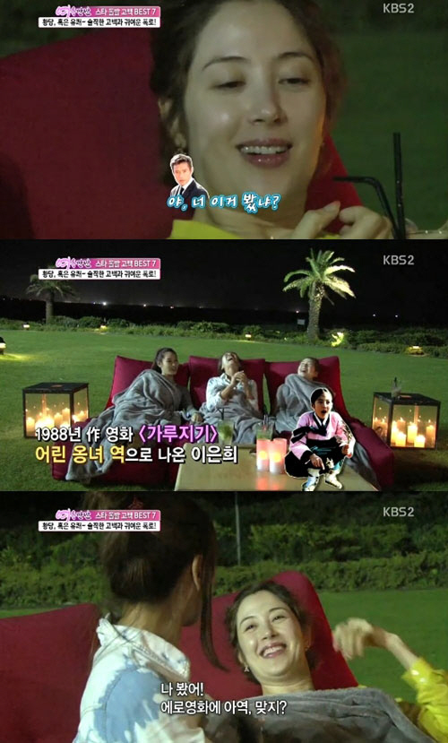 미스코리아 출신 이은희는 과거 '여유만만' 출연 당시 "에로영화에 출연한 경력이 있다"고 고백해 절친들을 놀라게 했다. 이은희는 "사실 에로영화 출신이 맞다. 1988년 영화 '가루지기' 속 옹녀 아역을 했다"고 말한 바 있다.