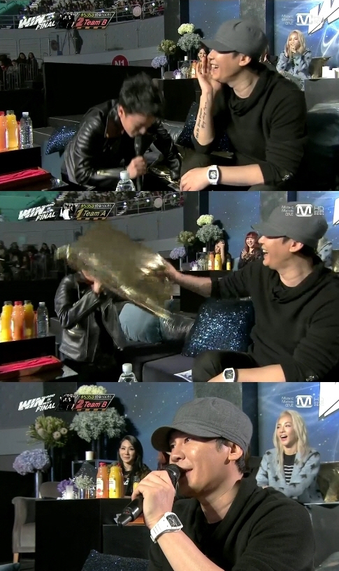 양현석은 당황하며 쿠션으로 승리를 때리는 시늉을 했다.