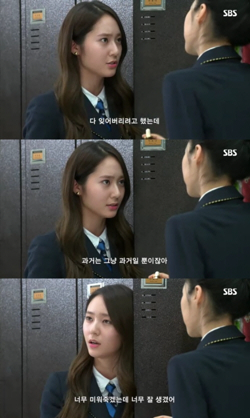 해당 장면은 크리스탈이 고등학교에서 다시 만난 첫사랑 김탄(이민호 분)에 대한 미련을 친구에게 영어로 토로하는 장면.