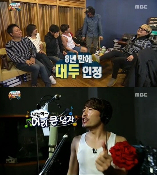 노홍철은 자신이 맡은 파트의 가사를 수정하겠다고 나섰다. 그는 "나는야 머리 큰 남자 아저씨라 부르지 좀 말아줘요"라면서, "사진 찍으면 그대 얼굴 콩만 하게 만들어요"라고 수정하고 싶은 가사를 불러 주위를 폭소케 했다.
