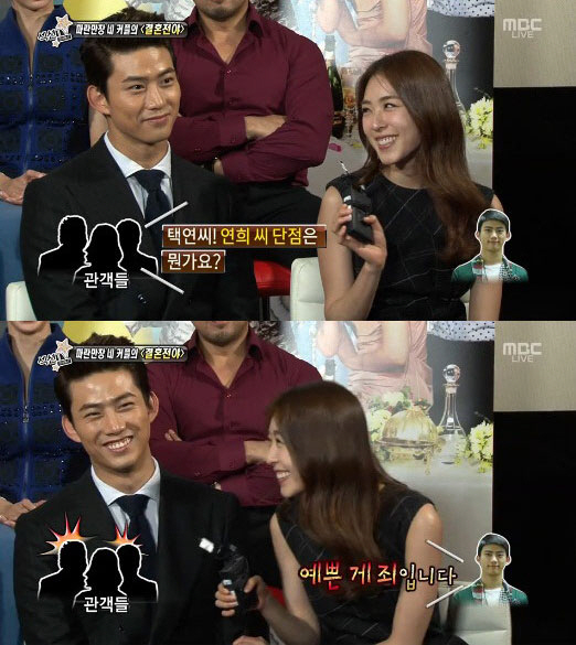 이날 리포터 서유리는 옥택연에게 "파트너 이연희 씨를 칭찬해 달라"고 요청했지만 옥택연은 우물쭈물 하는 모습을 보여 웃음을 자아냈다.