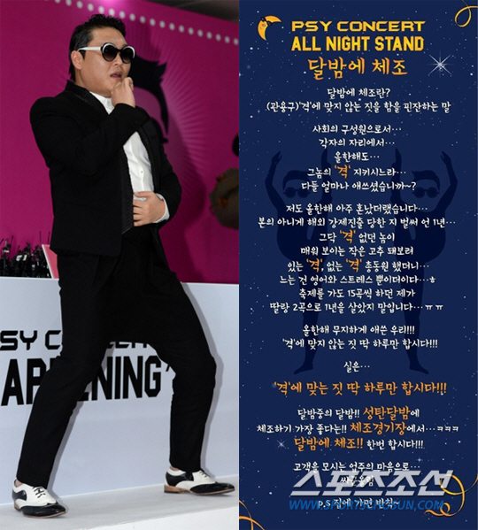 해당 포스터에는 '달밤에 체조'라는 콘셉트로 진행되는 싸이의 콘서트 홍보 겸 진심이 담긴 편지가 담겨 있다.