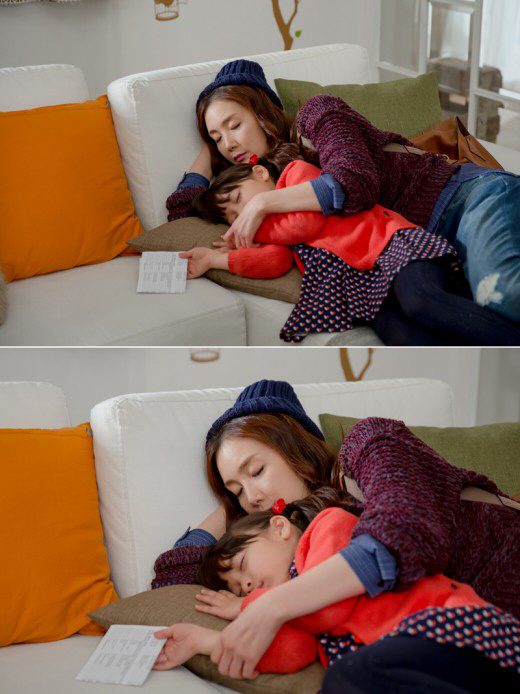 사진 속 최지우는 아역배우 강지우와 촬영장 소파에서 나란히 잠들어 있는 모습. '최강지우'라는 애칭으로 불리는 두 사람은 녹화 쉬는 시간을 틈타 부족한 함께 잠을 보충하는 모습.