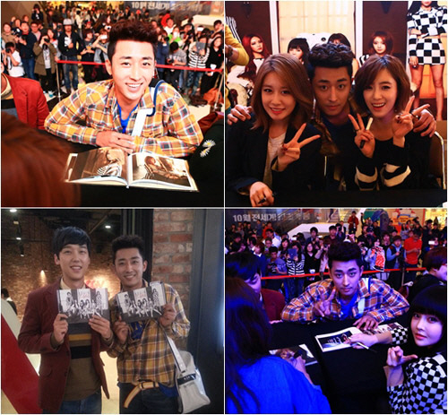손호준은 사인을 받으면서 티아라 멤버 은정, 지연, 보람과 함께 기념사진을 찍었고, 또 티아라에게 받은 사인 CD를 인증하며 환한 미소를 지었다.